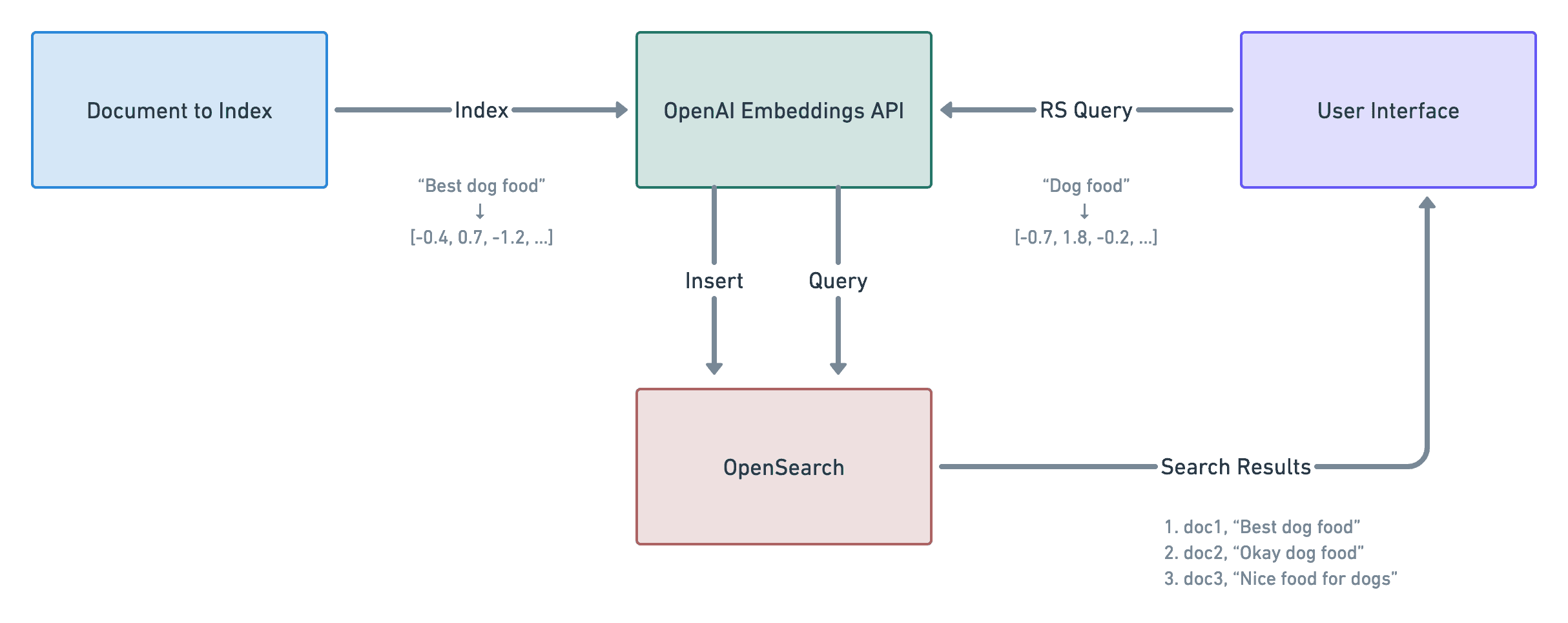 - Take the resulting vector and send it to OpenSearch/ElasticSearch